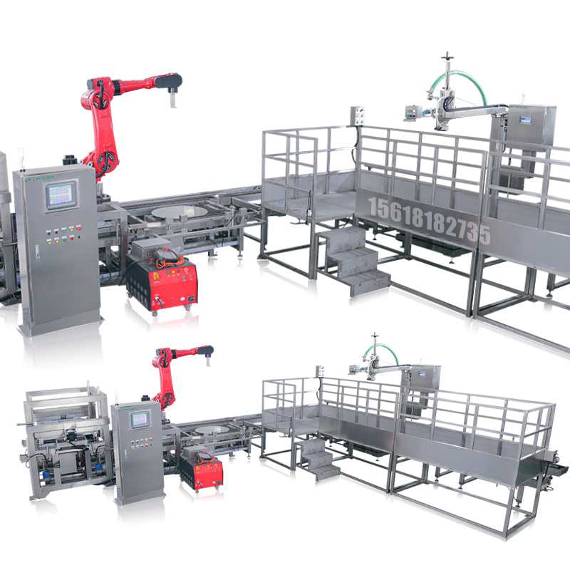 ■ 采用自動供棧,IBC噸箱機械手自動豎桶,人工輔助套袋,定位灌裝;