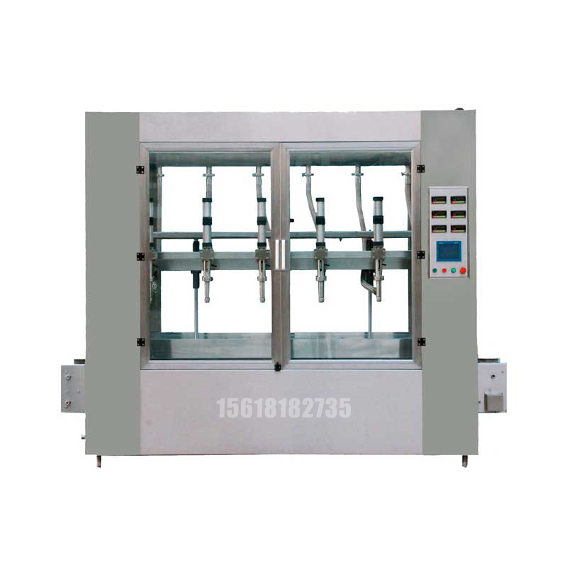 GZM50-6D 全自動(dòng)稱重式灌裝機(jī)產(chǎn)品概要:該設(shè)備由直線排列的秤臺(tái)(帶輥道),鏈條推桿進(jìn)出瓶機(jī)構(gòu),快、慢灌裝(帶氣缸下潛)機(jī)構(gòu),進(jìn)料過(guò)渡料箱,稱重控制儀表及可編程控制單元組成。該液體灌裝秤可以滿足多種液體自動(dòng)灌裝的需要,采用電機(jī)驅(qū)動(dòng)下潛結(jié)構(gòu),可滿足無(wú)泡沫、有泡沫液體的灌裝。主要參數(shù):·適用瓶徑: Min140×200×320mm,Max260×290×500mm·灌裝頭外徑: Ф40mm·計(jì)量精